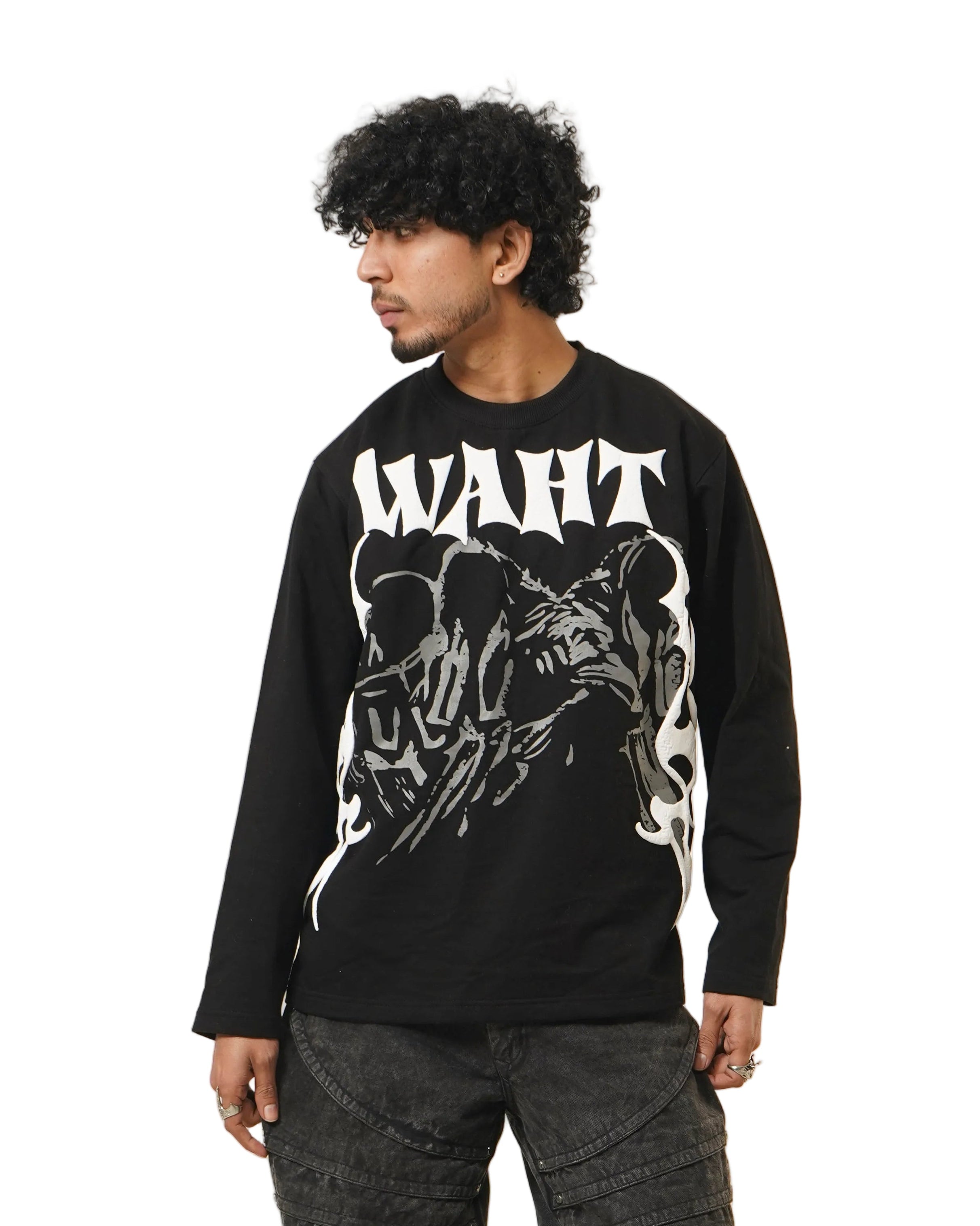 Stay cool, stay bold. This WAHT long‑sleeve tee is 100% cotton, designed for hot‑weather, all‑day wear without feeling heavy or sticky. The striking monochrome graphic and sharp WAHT lettering give it a powerful street look that works from daytime meetups to late‑night hangs.