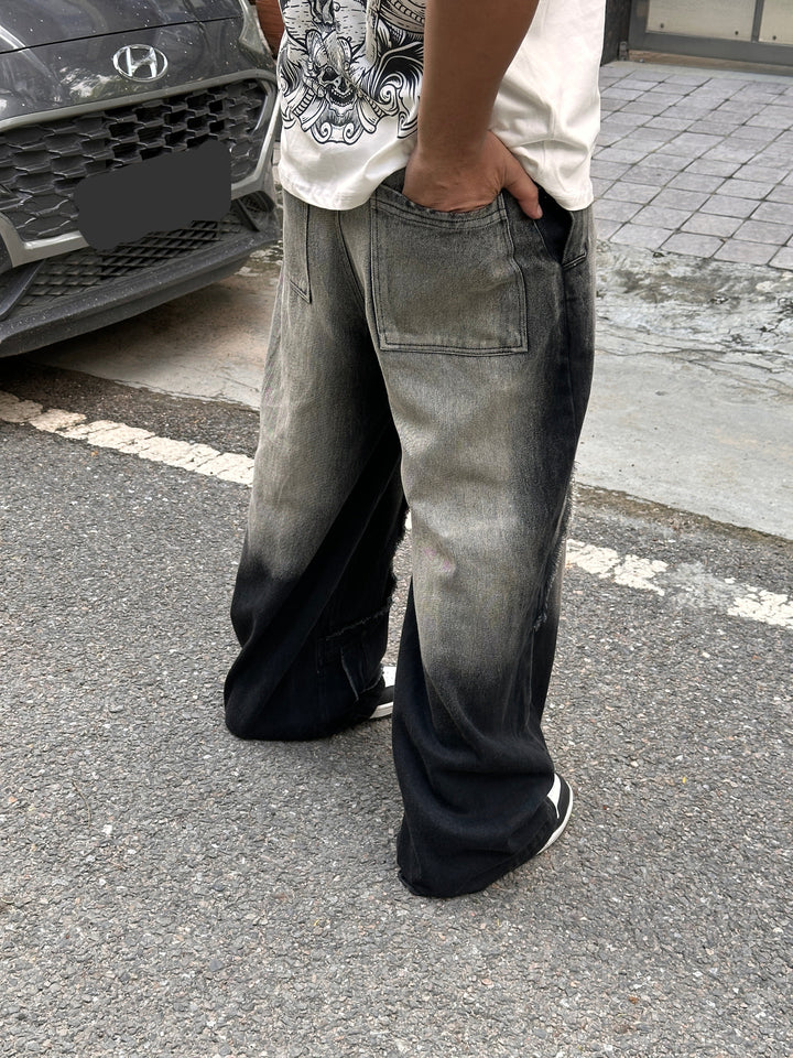 Made from premium heavyweight denim, these jeans are not only durable but also deliver all-day comfort with their relaxed, oversized fit. The washed effect and contrast fading showcase hours of craftsmanship, ensuring each pair has its own distinct personality.